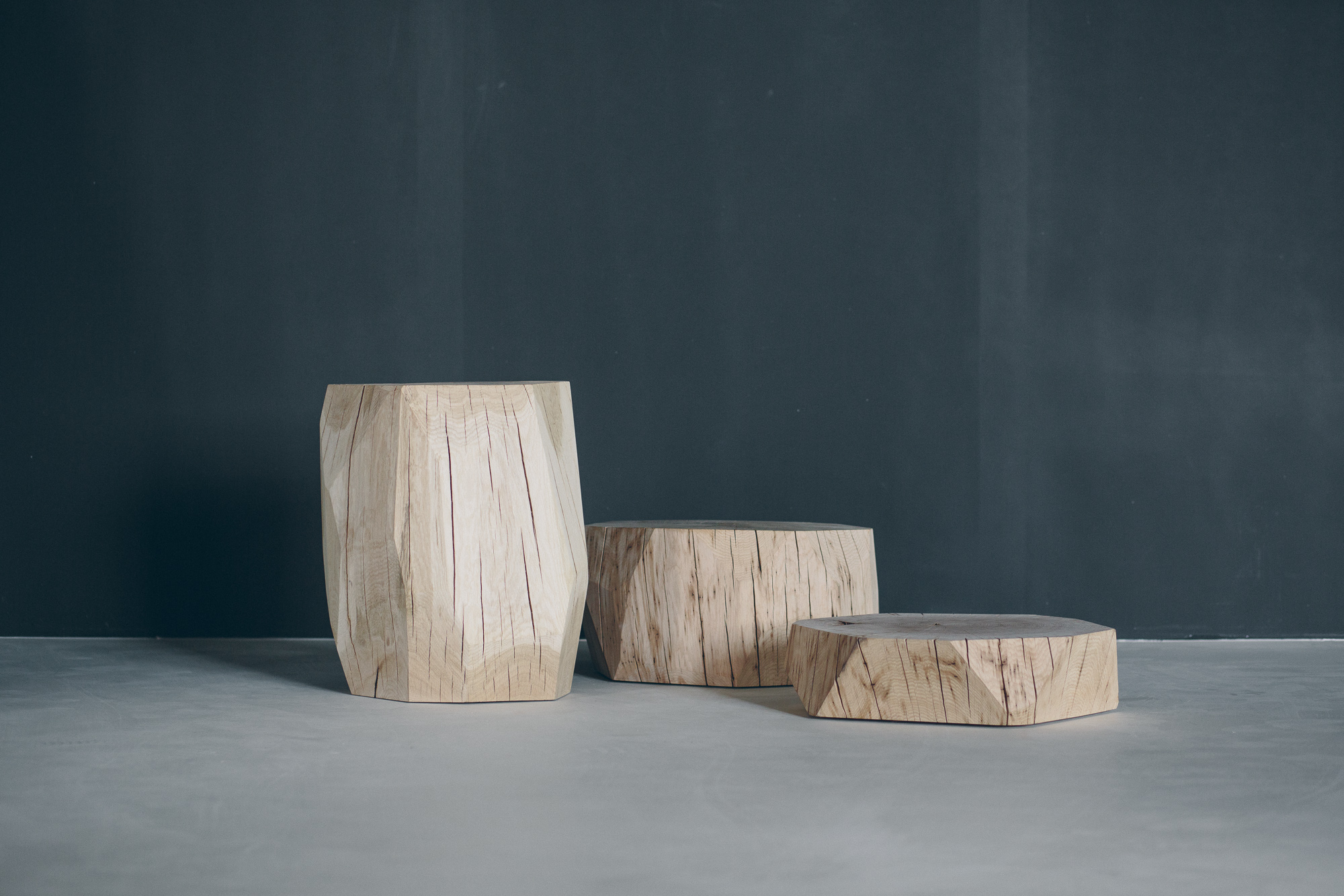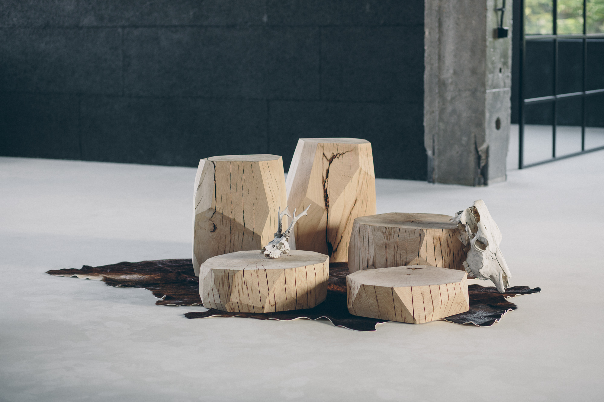 - Dubové špalky, jež unesou vázu, knihu, člověka i tíhu bytového designu.