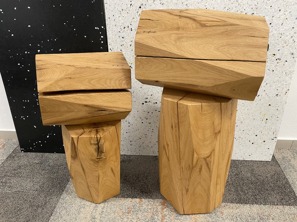 Představujeme ti set dubových stolků, který je tak sehraný, že by klidně mohl mít vlastní večerníček. Bob a Bobek – velký a malý dubový špalek, kteří spolu tvoří dvojici, co zvládne všechno od držení kávy až po držení atmosféry celého obýváku.