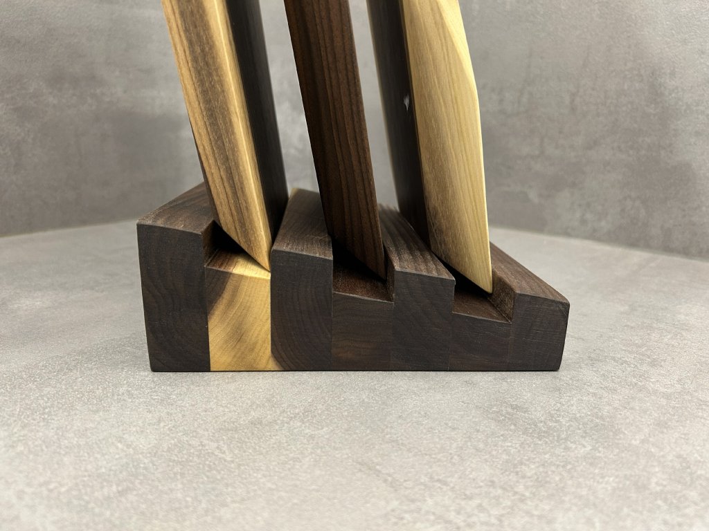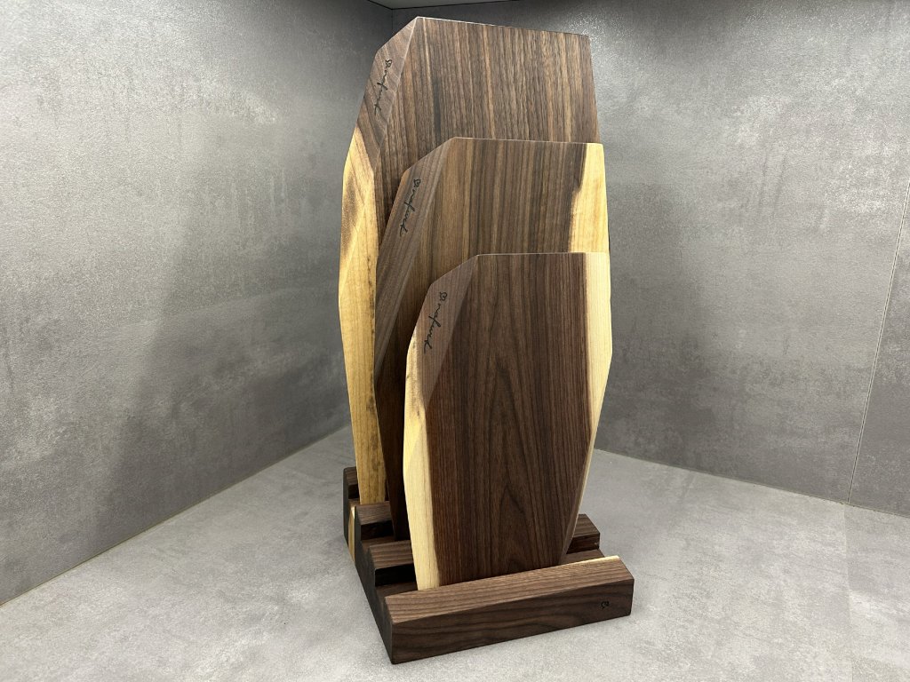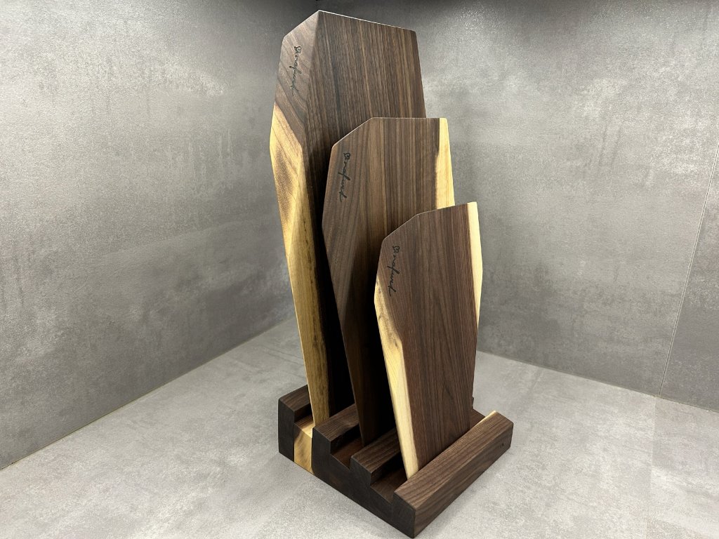 - Stojánek udrží všechna tři prkénka v dokonalém pořádku – což je víc, než se dá říct o většině kuchyní po nedělním vaření.